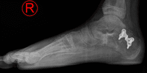 The image above compared to the image on the left, demonstrates a flat foot reconstruction achieved through bony procedures and is aimed at restoring the arch and maintaining joint motion.
